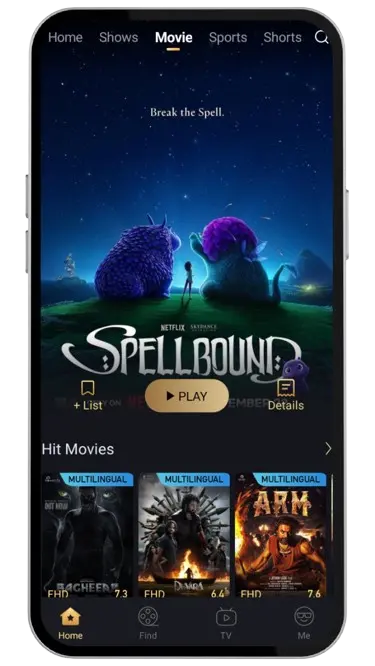 It has a vast library of content, including movies, TV shows, live channels, sports sections, and kids’ movies in multiple languages.